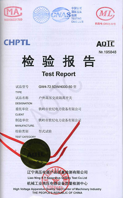 戶外高壓交流隔離開關檢驗報告