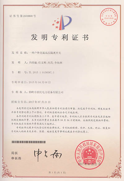 發(fā)明專利證書