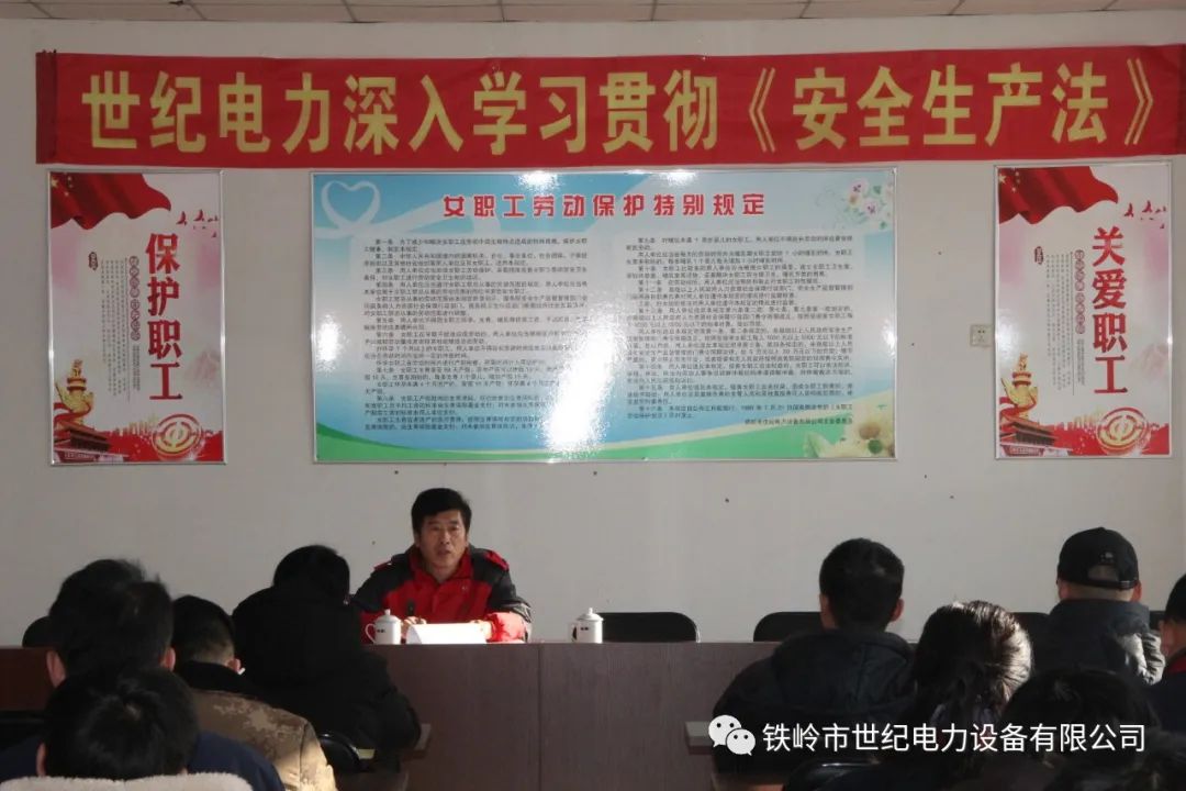 12月25日下午,為深入學(xué)習(xí)貫徹2021年新頒布的《安全生產(chǎn)法》,全面推進(jìn)安全生產(chǎn)法制建設(shè),廣泛營(yíng)造安全生產(chǎn)社會(huì)氛圍,鐵嶺市世紀(jì)電力設(shè)備有限公司組織開展“安全生產(chǎn)法”學(xué)習(xí)活動(dòng),會(huì)議由副總經(jīng)理王曉利主持,副總經(jīng)理張洪新出席并作安全生產(chǎn)專題宣講,公司全體職工參加會(huì)議。