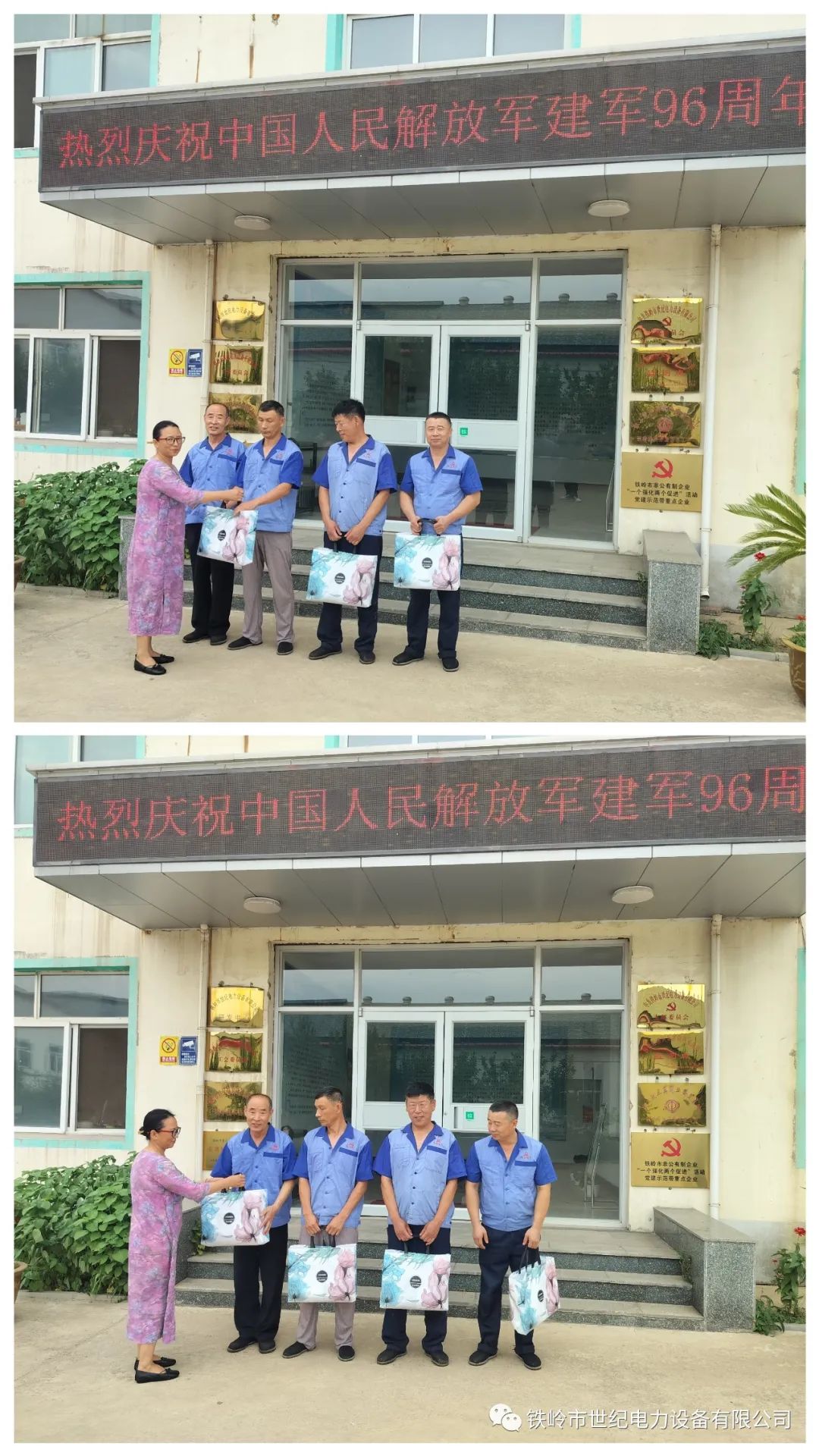 在“八一”建軍節(jié)來(lái)臨之際,為發(fā)揚(yáng)優(yōu)良傳統(tǒng),傳承紅色基因。8月1日鐵嶺市世紀(jì)電力設(shè)備有限公司開(kāi)展了“八一暖心慰問(wèn),情系退伍軍人”慰問(wèn)活動(dòng),把黨和公司的關(guān)懷送到了退伍軍人職工的心中。